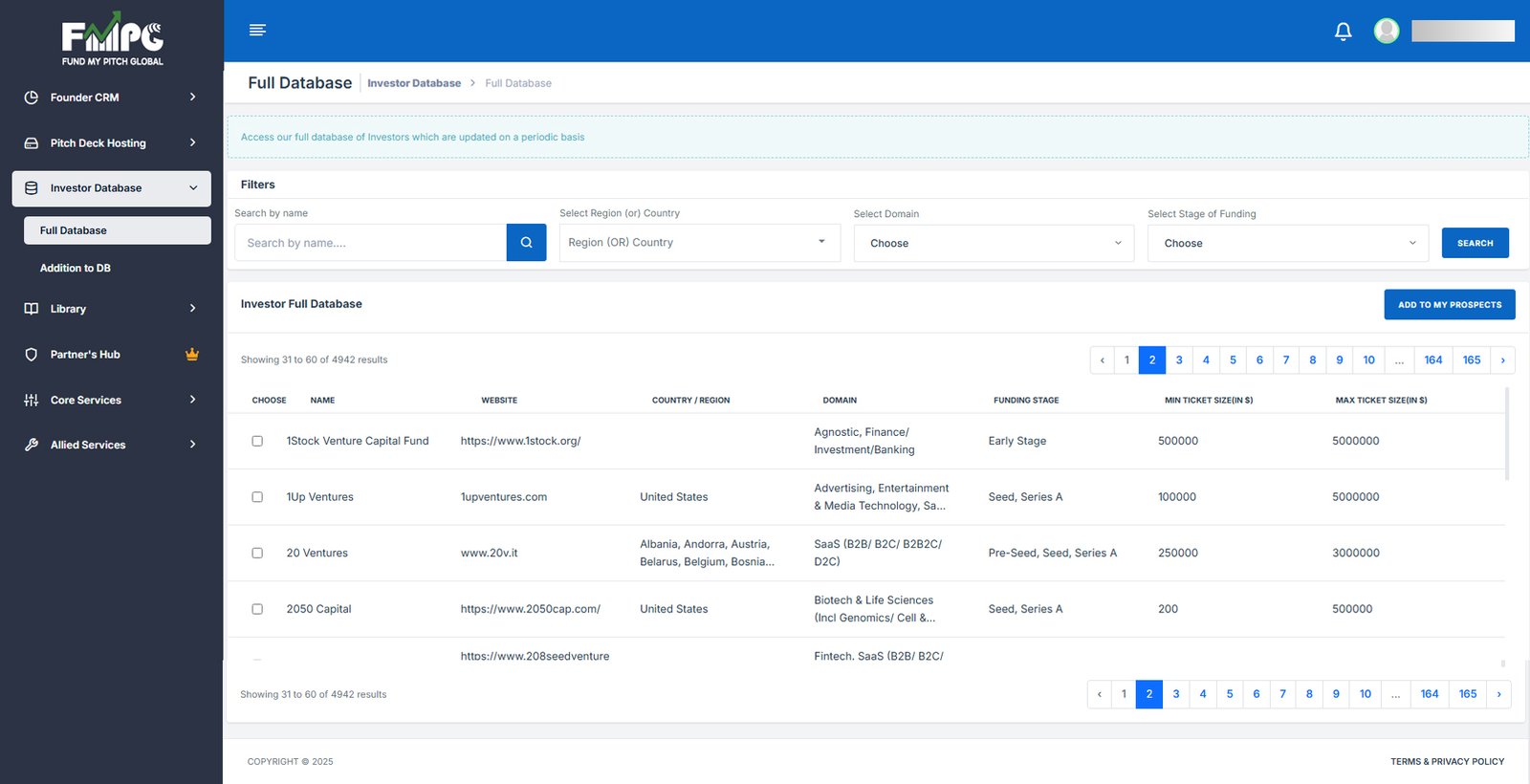 Your search for the right investor is made easy. Our Software provides you a pre-filtered list of Investors that might be the right fit for you.